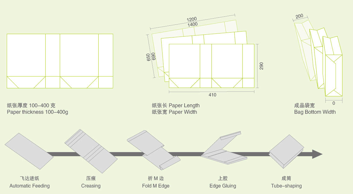 | ব্যাগের প্রস্থ | 160 মিমি - 450 মিমি | কাগজের ওজন | 100 গ্রাম-350 গ্রাম | |